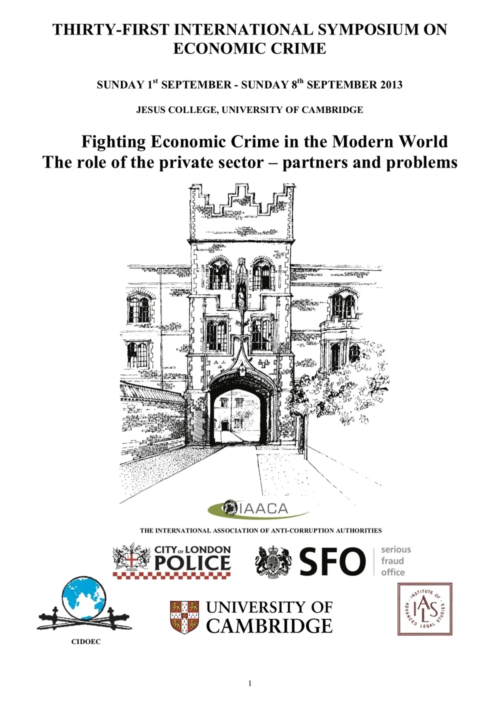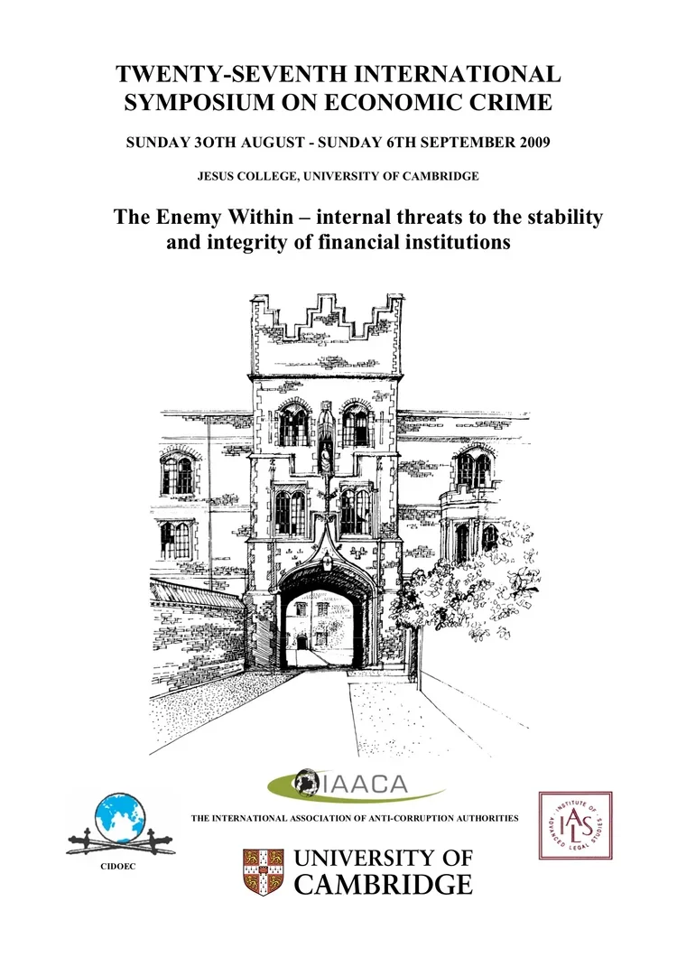 Given the diversity of issues we address and the value of ‘off the record’ and informal discussions, we have never attempted to record the wealth of discussion that takes place each year at Jesus College and in our regional symposia. However, many of the key issues are addressed in papers that are subsequently published in the Journal of Financial Crime and Journal of Money Laundering Control.