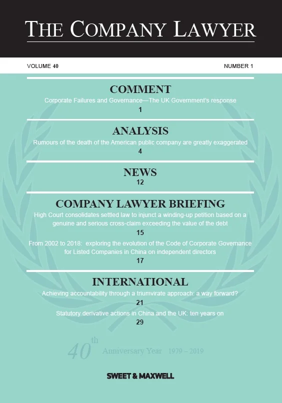 Closely associated with the symposium and the research it stimulates is The Company Lawyer, published by Sweet and Maxwell. The Company Lawyer was founded by Prof Rider in 1979 to promote collaboration between practitioners and academic lawyers in regard to all legal matters relevant to corporate life.